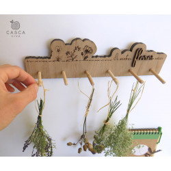 - 6 pauzinhos para pendurar os raminhos (a grande maioria das flores devem secar viradas para baixo, para que sequem direitinhas. Só depois de estarem bem secas podem ser colocadas na posição normal, numa jarra)