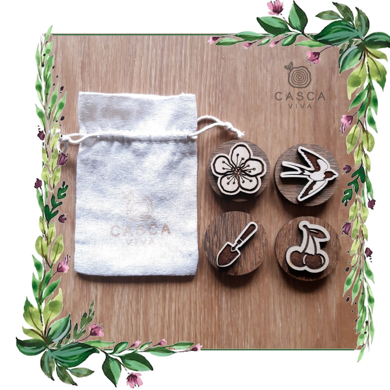 Pack de 4 carimbos de madeira alusivos à Primavera.